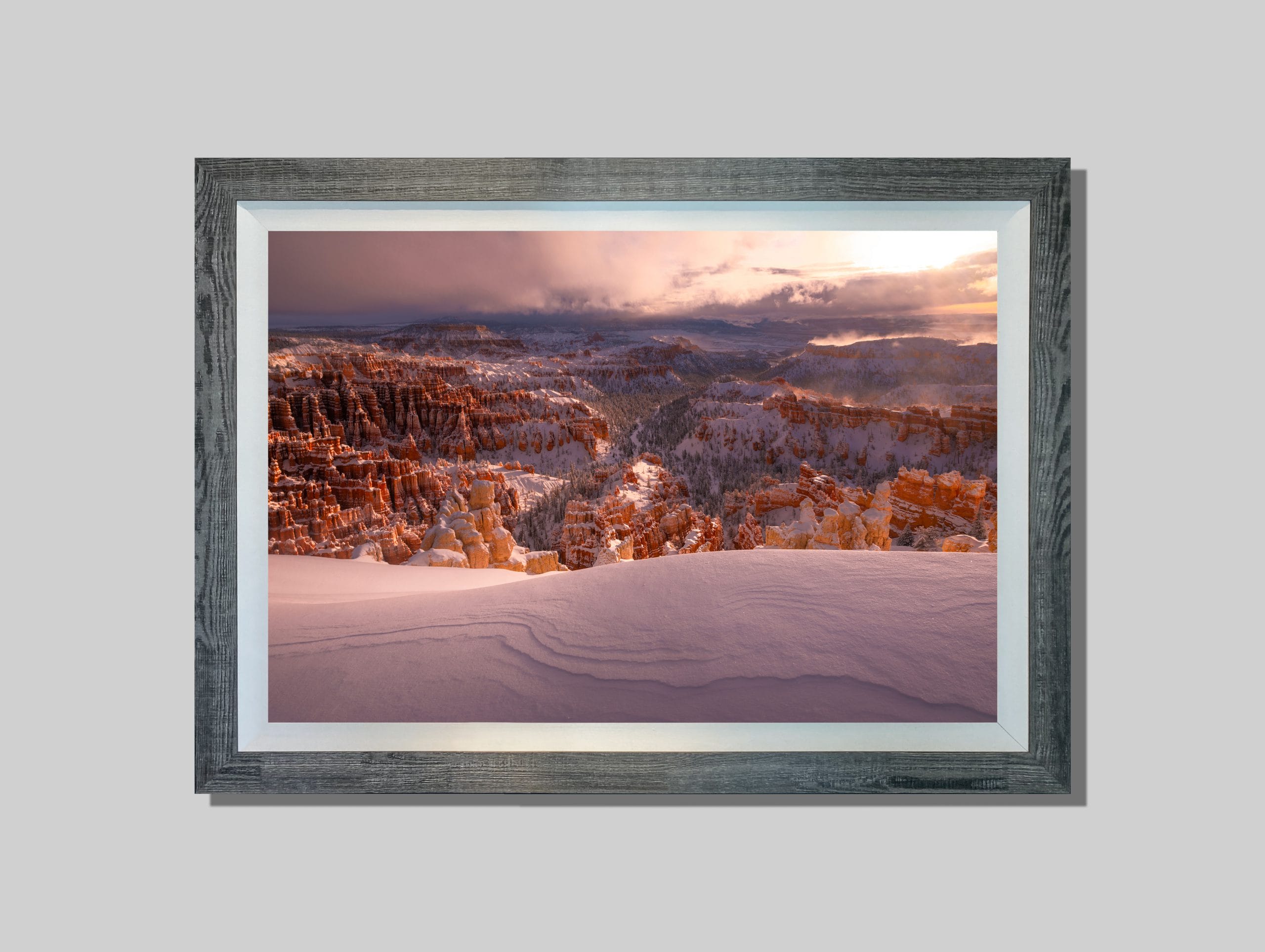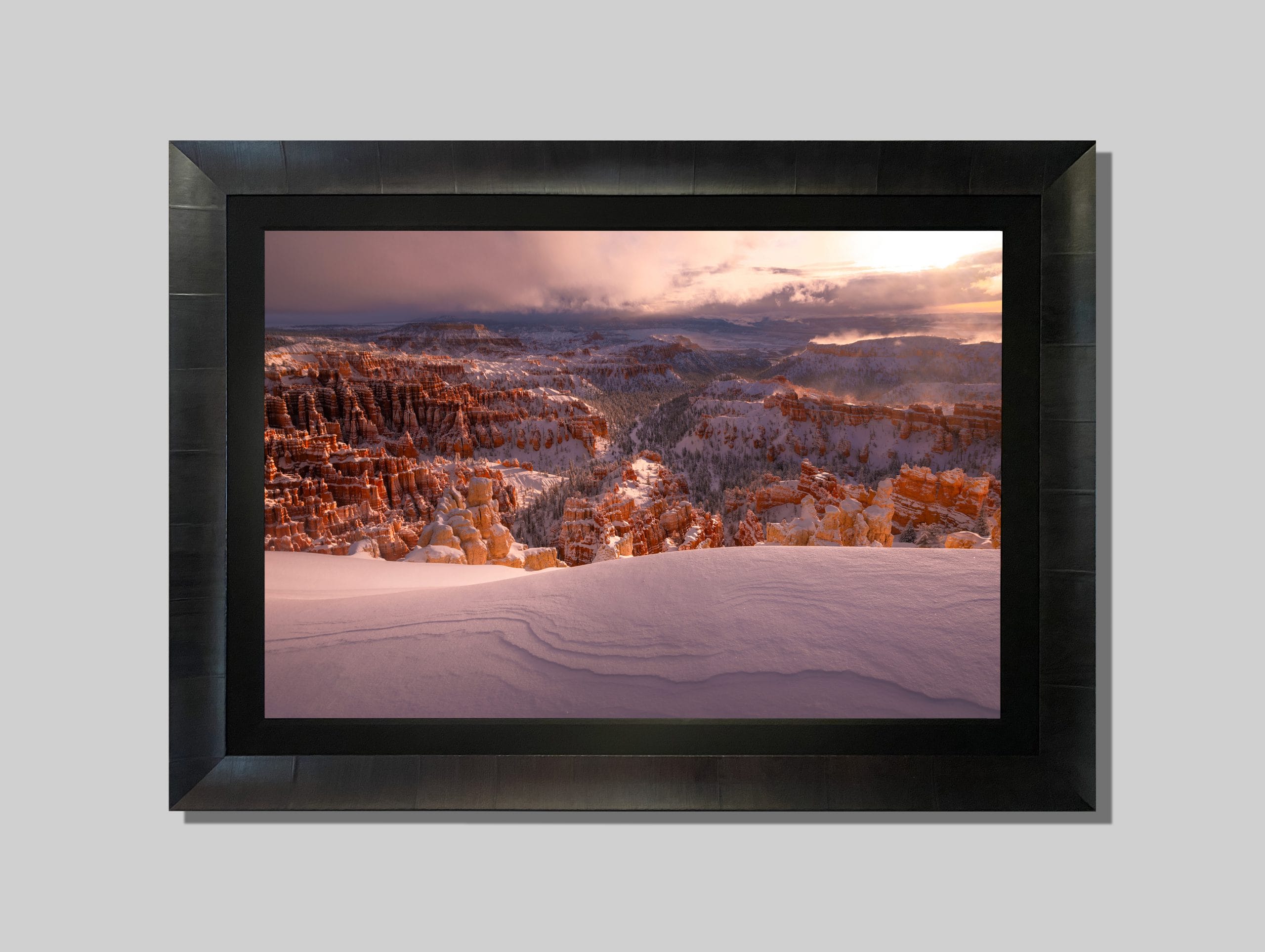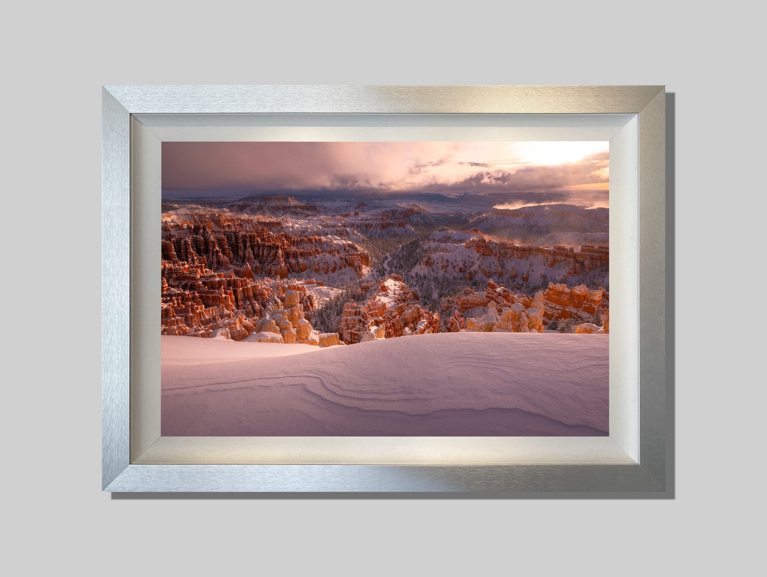 Bryce Canyon is one of those places that you have to see for yourself at least once. For me, it’s quite often. The morning of this shot I awakened to the complete amphitheater and valley covered in a few feet of fresh snow from the night before. The distant steam of ice melt from the warm sunrise and incredible untouched blanket of white snow completely changed this iconic vista. This was the shot I had been after for many years!